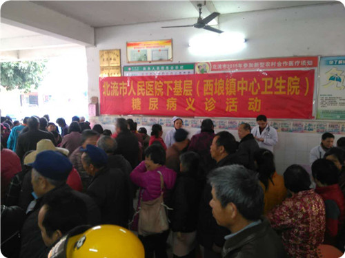 由中国医师协会发起的“2016年基层糖尿病及并发症筛查技术评价项目”于3月在全国范围全面启动,我院内分泌风湿科积极响应国家在防控糖尿病领域采取的策略,在2016年开展多场系列活动取得良好效果的基础上, 3月17日我院内分泌风湿科与“健康中国 科普助力”护理下基层项目组联合携手,由内分泌风湿科卢红平主任、覃焕玲护士长组织成立义诊小组来到在西琅镇中心卫生院,开展糖尿病及并发症免费筛查、义诊活动。
