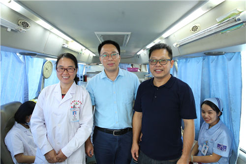 (玉林市中心血站副站长李进才(中)莅临活动现场)