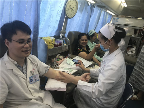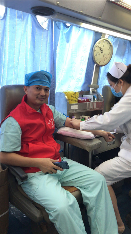 为进一步发挥医务人员在无偿献血工作中的示范性作用,鼓励更多爱心人士自愿地、定期地参加献血,促进无偿献血工作管理的常态化,缓解目前临床用血紧缺的局面。8月10日上午,顶着炎炎烈日,玉林市中心血站献血车缓缓开进医院内科楼门前,在献血现场,医院干部职工热情高涨,积极投入到这次主题为“无偿献血-白衣战士当先锋”活动中。在市中心血站工作人员的指导下认真填写登记表、量血压、验血型,逐项进行。此次参与无偿献血的队伍里,既有党员干部,也有普通职工,他们用自己的爱心发扬“人道、博爱、奉献”精神,弘扬无私奉献、助人为乐的精神。积极响应“参与创建全国文明城市,率先垂范,争当无偿献血先锋”的倡议。
