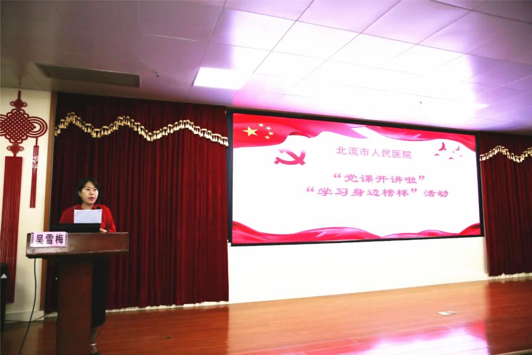 为深入学习贯彻习近平新时代中国特色社会主义思想和党的十九大精神,贯彻落实北流市委、市解放思想再出发活动领导小组办公室《北流市开展“大学习、深调研、强服务、敢担当”活动实施方案》,积极推进我院“党课开讲啦”和“学习身边榜样”活动,聚焦“关键少数”,发挥“头雁”效应,组织党员干部带头、全面、深入、系统、持续学习。北流市人民医院于2020年10月14日下午,组织全院党员领导干部开展了“党课开讲啦”和“学习身边榜样”两项活动。