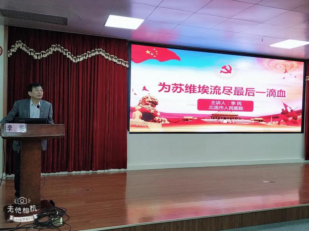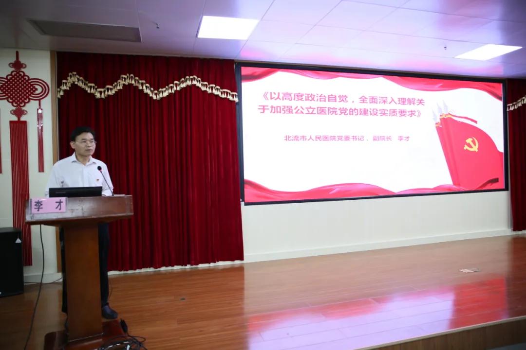 会上医院党委李才书记率先带头讲党课《以高度政治自觉,全面深入理解关于加强公立医院党的建设实质要求》,随后妇产儿科党支部李民书记上党课《为苏维埃流尽最后一滴血》。呼吸与危重症医学科莫剑主任、重症医学科何永红副护士长以一名普通党员身份与大家分享了他们个人和医疗团队成员支援湖北抗击新冠疫情的工作经历和心路历程,为大家树起了鲜明的学习榜样。