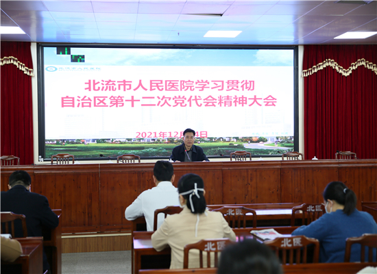 12月14日下午,北流市人民医院召开学习宣传贯彻广西壮族自治区第十二次代表大会精神大会。会议由自治区党代表何永红同志传达自治区第二次党代会精神,医院中层领导及各党支部委员参加会议。