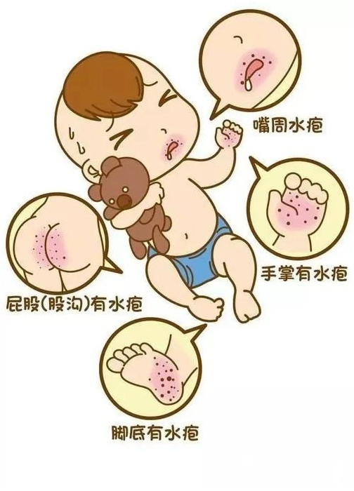 多发生于5岁以下儿童,表现口痛、厌食、低热、手、足、口腔等部位出现小疱疹或小溃疡,多数患儿一周左右自愈,少数患儿可引起心肌炎、肺水肿、无菌性脑膜脑炎等并发症。个别重症患儿病情发展快,导致死亡。目前缺乏有效治疗药物主要对症治疗。