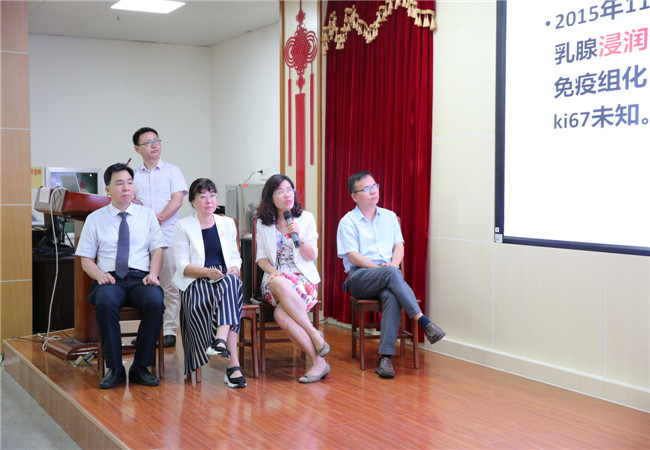 最后,广西医科大学附属肿瘤医院乳腺肿瘤内科钟武宁博士,北流市人民医院肿瘤、血液科吴科梅主治医师分别以《MDT病例讨论》为主题与在场的莫钦国、陈龙、陆永奎、赖少侣、黄锦成、朱付华等嘉宾一起,通过“肿物穿刺或切除活检,明确病理类型?”、“明确病理后下一步治疗:直接手术?术新治疗?姑息化疗?”、“乳腺癌术后如何辅助治疗?”等几个问题展开了分析,以及在临床应用中如何处理等内容讨论了MDT病例,让学员们认识到我国目前乳腺癌治疗实际执行情况在基层医院中与指南推荐存在脱节情况,需要加强在基层医院进行规范化的教育及培训。