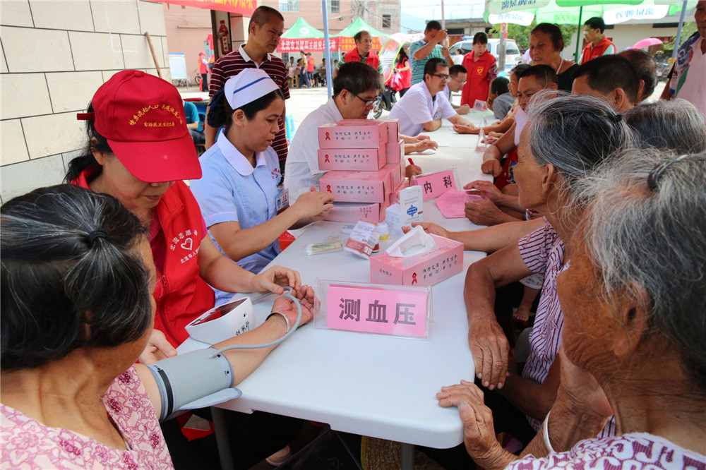此次活动共为100多名村民提供了健康义诊,发放健康宣传资料、扫黑除恶资料、赠品各200多份。