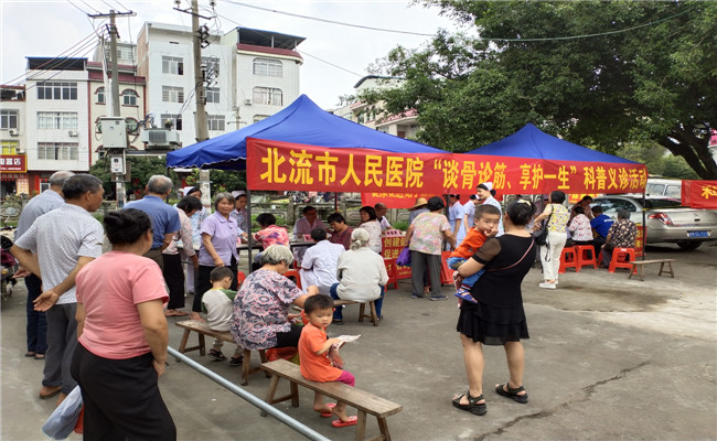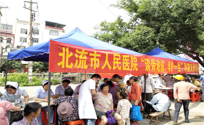 为了宣传普及骨科慢性疾病预防和管理知识,正确认识关节疼痛、颈椎病、腰椎间盘突出引起的腰腿疼痛及骨质疏松引起的腰痛。我院骨科二区团队于5月15日在北流市民乐镇政府球场组织开展了以“谈骨论筋、享护一生”为主题的科普教育义诊活动,200多名群众参加了活动。