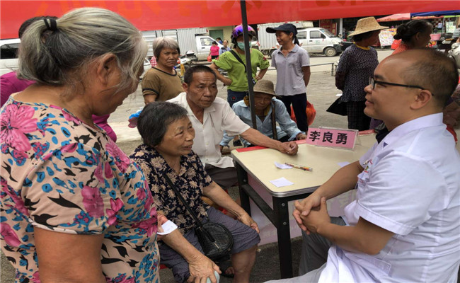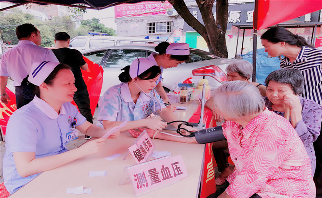 活动中张超金副主任、李良勇副主任医师及何乃新主治医师为群众免费义诊、体格检查,耐心解答群众的咨询,护士们则为群众进行免费测量血压、发放健康知识宣教手册。