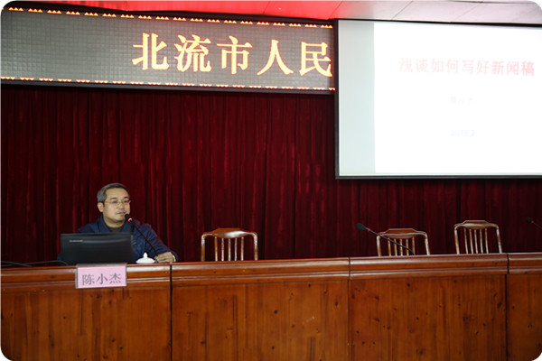 随后,陈小杰主任作了题为《浅谈如何写好新闻稿》的授课。陈主任首先从新闻稿的架构讲述新闻写作的特点,再从标题和导语的编写、误词歧义的混用等基本技能,结合当前社会环境大背景、医院新闻宣传的角度等几方面与通讯员们进行了深入浅出交流和探讨,潘老师严谨的授课思路、生动丰富的兴例令在场学员耳目一新,精彩的授课引人入胜。