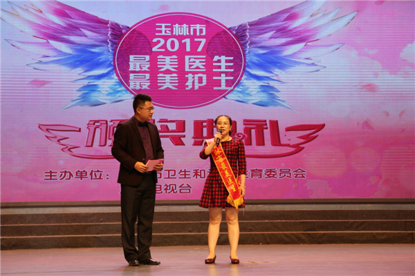 为了让更多群众了解和理解一线医务人员的工作,全面展现玉林市各医院医生、护士在工作岗位中全心全意为患者服务的良好精神风貌,结合开展“两学一做”学习教育,进一步宣传卫生计生系统先进典型,传递正能量。由玉林市卫生和计划生育委员会、玉林电视台联合主办的(玉卫发﹝2017)12号)2017年寻找最美医生、最美护士活动已于3月28日启动,颁奖仪式于5月11日晚在玉林市文化艺术中心歌剧院举办。