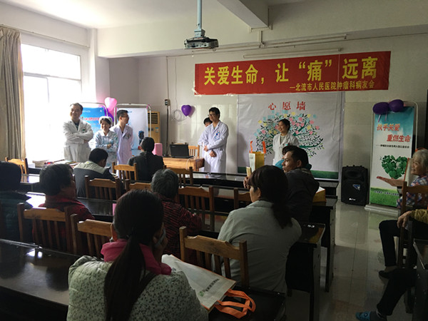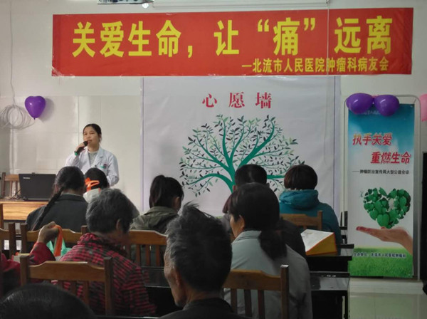为了迎接“第24届全国肿瘤防治宣传周”,肿瘤科于4月17日09:00在肿瘤科三楼小会议室进行第四届病友会,本次病友会主题是关爱生命,让“痛”远离,主要讲解肿瘤患者居家护理、肿瘤患者应当如何进补、如何防癌止痛等肿瘤健康教育知识。