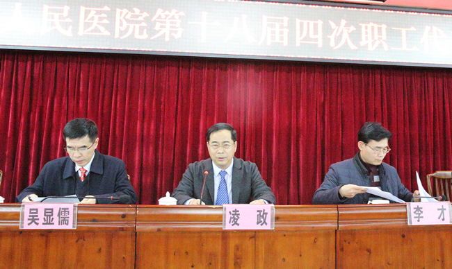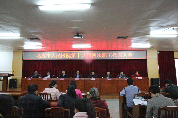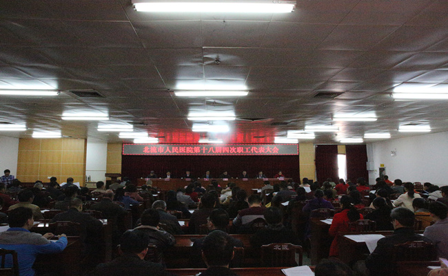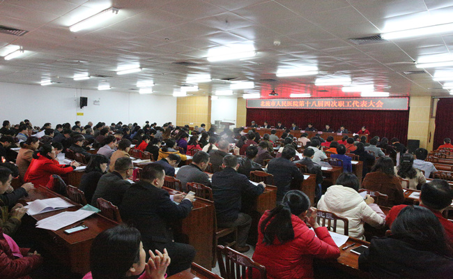 1月23日下午,北流市人民医院第十八届四次职工代表大会在内科楼十三楼会议室隆重召开。凌政、李才、吴显儒、蒋靖生、苏福锦、胡桂江、吴雪峰、陈雁等医院领导悉数出席大会,167名正式代表和13名列席代表参会,大会由工会主席胡桂江主持。