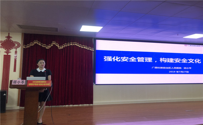 广西自治区人民医院护理部副主任邱小芩主任护师给我们讲述了《强化安全管理,构建安全文化》,主要从患者十大安全目标进行讲解,以海恩法则玛丽发错药之后-发人深省的管理故事等各种形象的例子说明安全的重要性及处理方法。