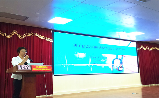 玉林市护理学会理事长陈照坤主任护师讲授的《新医改背景下社区护理发展现状与展望》,从基层医院如何建设改造、拓展业务,让基层医院发展得更快,更好服务于各乡镇,改善乡镇卫生院的医疗环境。同时也鼓励各家有条件的医院做好延伸护理服务,让更多患者体验到优质服务的获得感。
