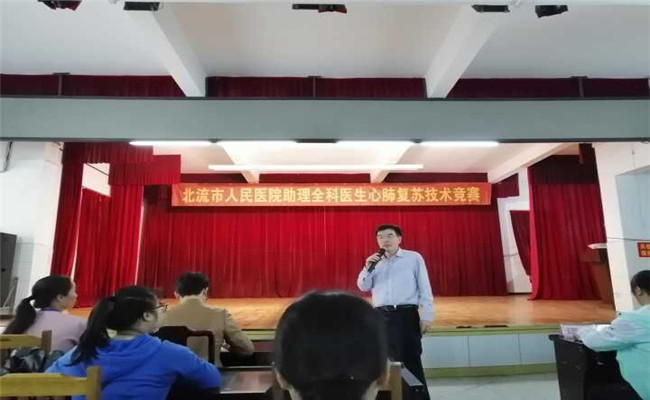 为进一步提高助理全科医生规范性培训工作的质量和管理水平,3月29日,我院在十三楼会议室还举办了“北流市人民医院助理全科医生心肺复苏术技能竞赛”,吴显儒常务副院长亲临现场指导助理全科医生培训工作,并作了重要讲话,对全体学员提出殷切的期望,希望全体学员在医院学习期间,能积极主动地向临床带教老师学习,全面提升自己的临床水平,为将来服务基层奠定坚实的基础。吴显儒常务副院长给予了学员们很大的鼓舞,体现了我院对助理全科医生规范性工作的高度重视。