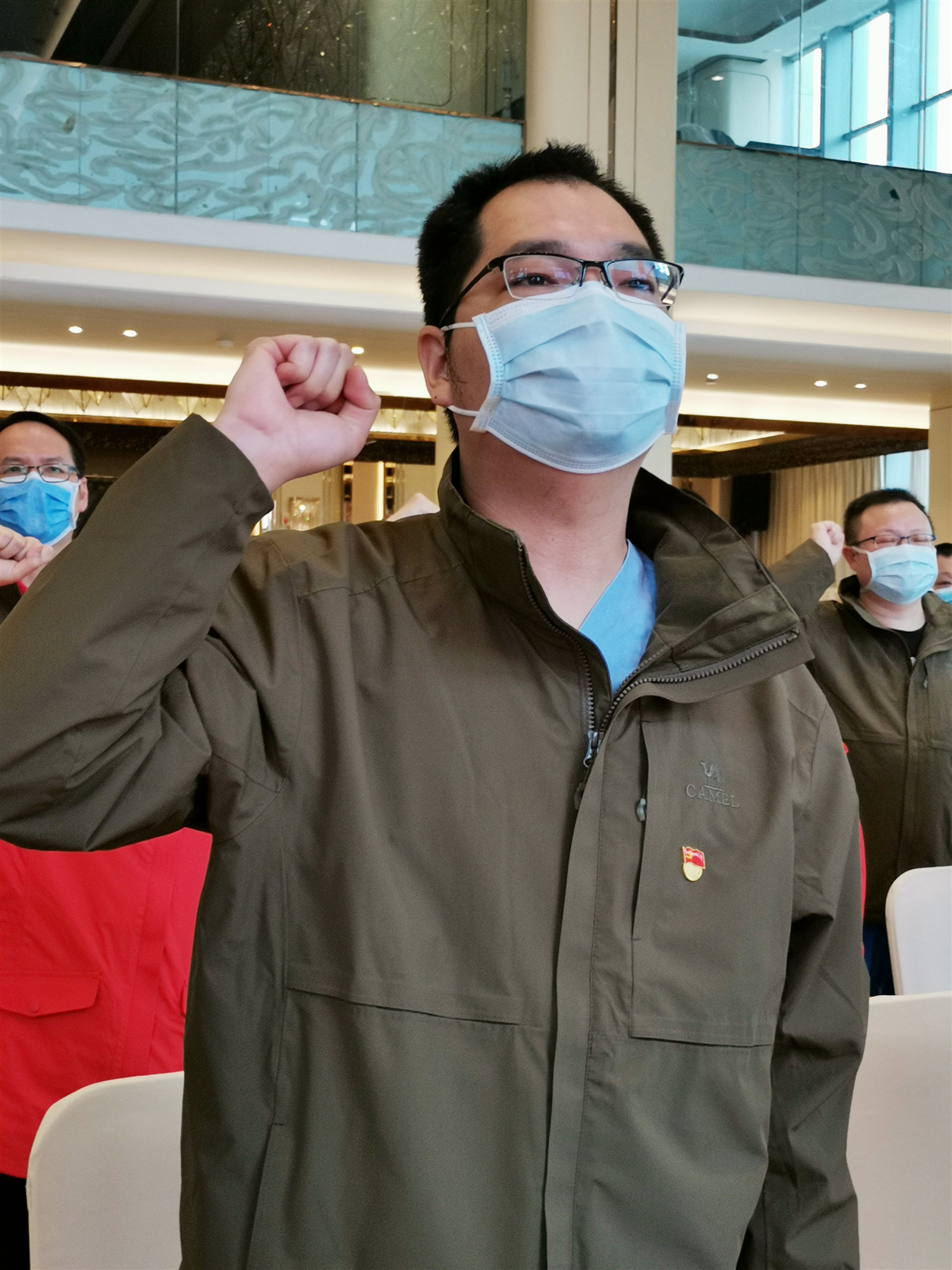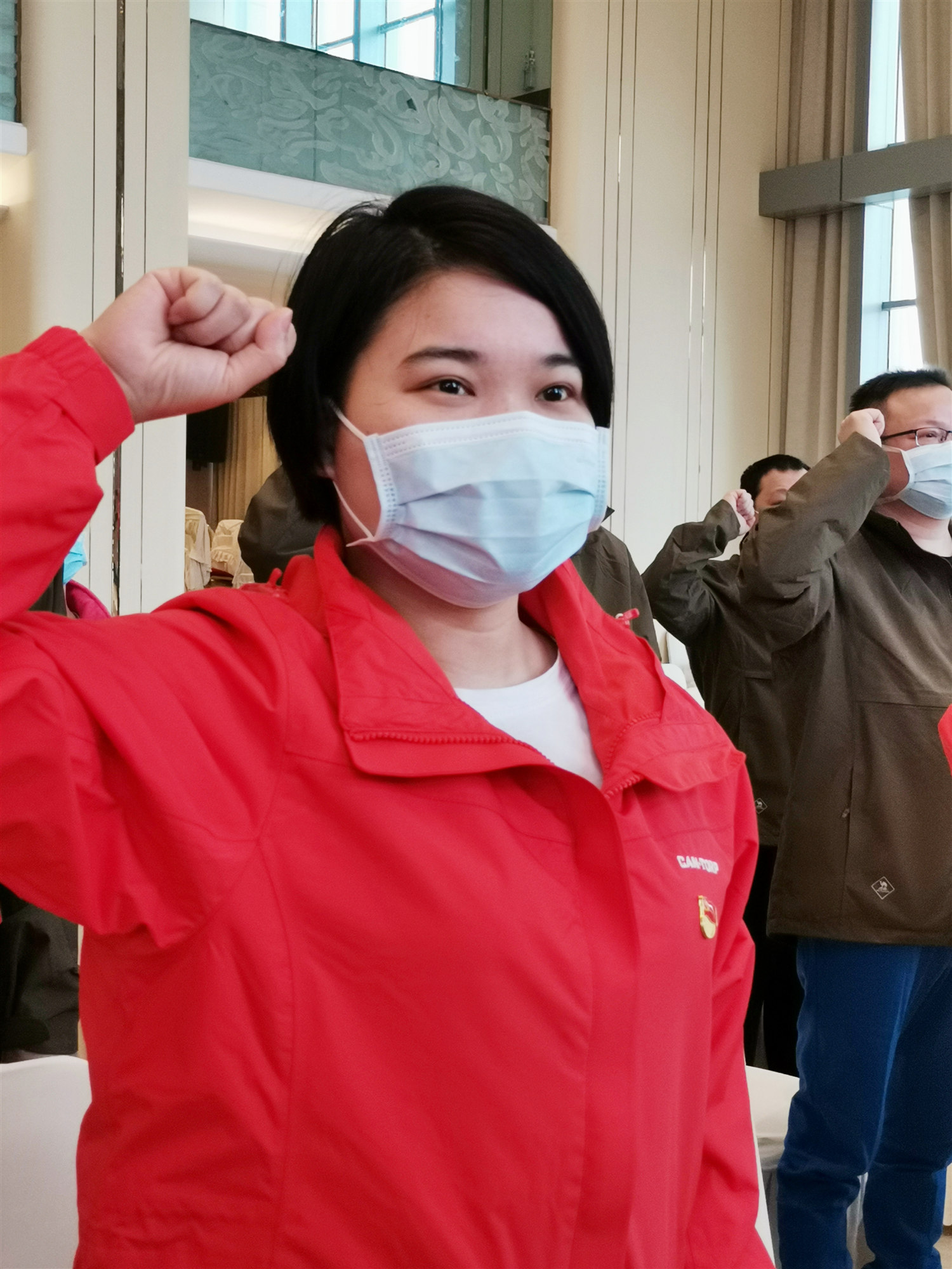3月22日,我院援鄂医疗队又有5名队员在广西第七批赴湖北抗疫医疗队临时党总支(第三临时党支部)驻地举行入党宣誓仪式,成为火线上一名光荣的中共预备党员,他们分别是刘鸿献、钟海明、罗春凤、黄洁、凌榕。刘鸿献、钟海明在援鄂抗击疫情中从事感控工作,黄洁、罗春凤、凌榕在援鄂抗击疫情中从事护理工作。