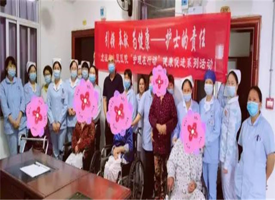 2021年国际护士节主题—引领之声:展望医疗保健的未来,这个主题反映了护士作为最大的医疗保健专业群体,在维护人类一生健康方面发挥了重要作用。在护士节来临之际,我院护理部开展“护理在行动 ”健康促进系列活动,4月19日下午,我院老年慢病、康复护理、造口伤口护理专业小组成员一行10多人走进北流市印塘养老院开展护理查房及健康指导活动,受到该院的工作人员及老人的热烈欢迎和赞誉。本次活动给老人们送去了爱心和欢乐,继承、弘扬了中华民族“尊老、敬老、爱老”的传统美德,使老人们体会到了生活的美好和社会的温暖,提高老年人的健康生活水平,增强了老年人幸福感。