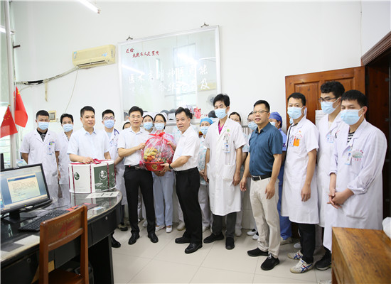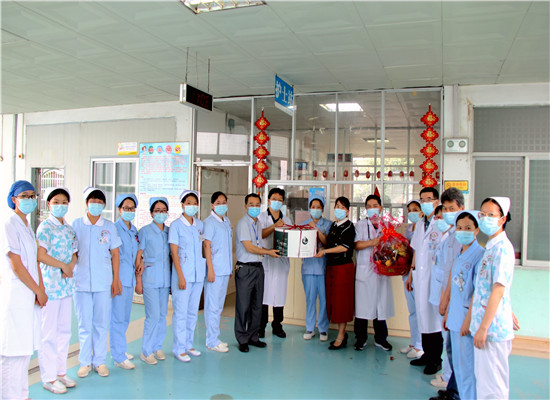 12日上午,在北流市卫健局覃德军局长、医院党委书记李才、党委副书记吴雪梅的带队下,分两组代表医院深入医院护理单元分别对麻醉手术室、神经外科、重症医学科、骨科一区、急诊医学科、呼吸与危重症医学科、心血管内科、发热门诊、儿科二区进行了慰问,向一线的护理工作者送上节日的问候和祝福。