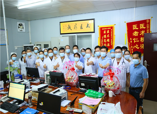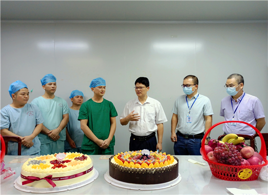 8月19日上午,医院党政班子成员深入各临床医技科室看望慰问一线医务人员,向广大医务工作者致以节日的问候,送去慰问品水果和蛋糕,并鼓励大家再接再厉,共创三级甲等综合医院,以更先进高效的医疗技术,更好地服务北流人民。
