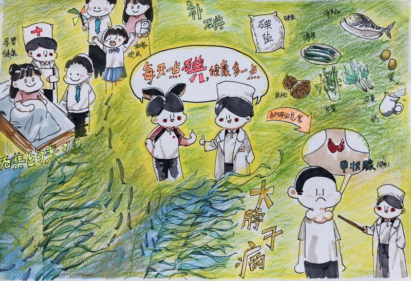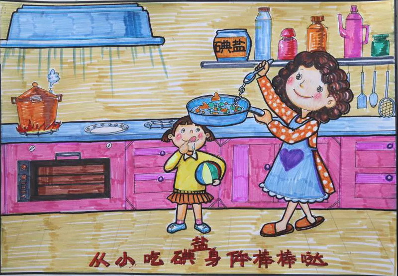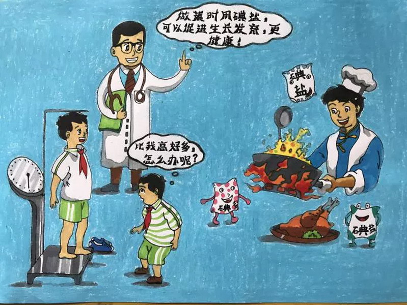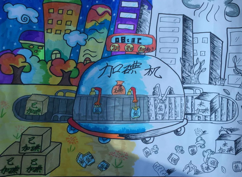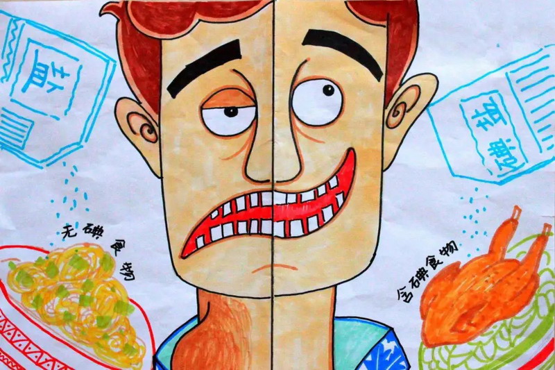(文中图片来自于2017年-2018年5.15全国防治碘缺乏病日中小学生宣传画征集大赛作品)
